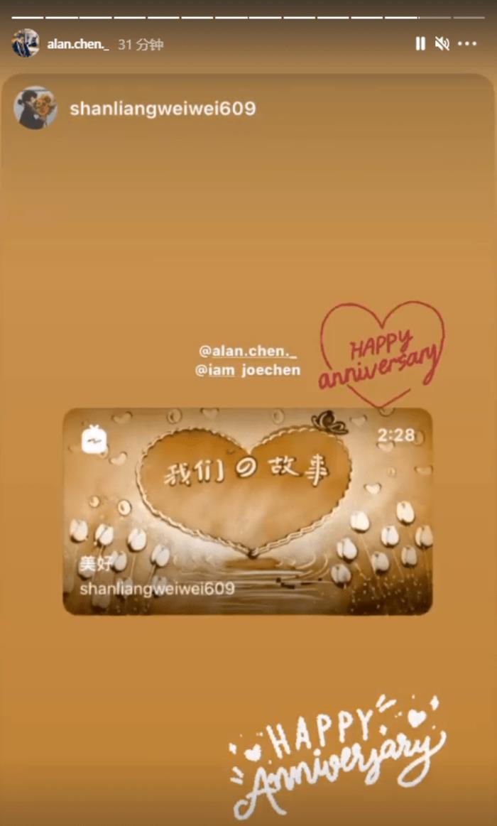 Alan晒出约会现场照,庆祝与陈乔恩恋爱两周年。
