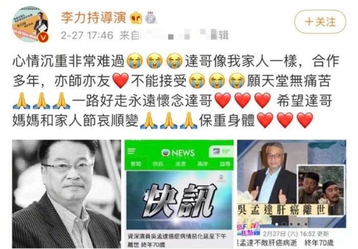 2月27日下午,据媒体报道,达叔吴孟达因病去世,享年68岁,立马在网络上引发了巨大的讨论。