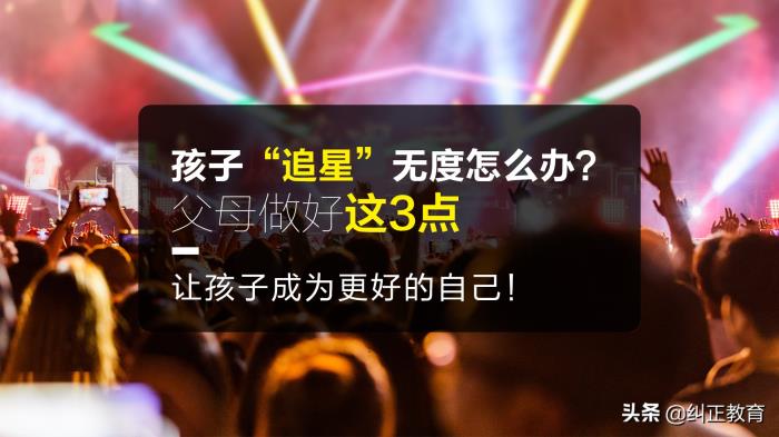 孩子追星无度怎么办?家长需要做好这3点。大家好,欢迎来到今天的纠正亲子课堂。说起“追星”,相信是每个人都有过的人生经历,有些人为了离自己的偶像更进一步,努力把自己变得更优秀,而有的人却像着了魔一样,花光了自己的钱财,只为帮偶像打榜,成绩也是一落千丈,最后得不偿失。面对孩子追星过度,家长应该怎么办呢?今天来给大家讲三点。