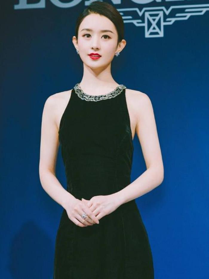 身着黑色优雅礼服,大露背设计,搭配烈焰红唇,有些小性感,一颦一笑尽显女神风采。