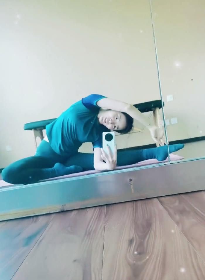 不得不说,李思思的身材真的很好,瘦而不柴玲珑有致,坐下时腰腹没有一丝赘肉,一双“筷子腿”又细又长,四肢舒展又灵活,展现出惊人的柔软度。