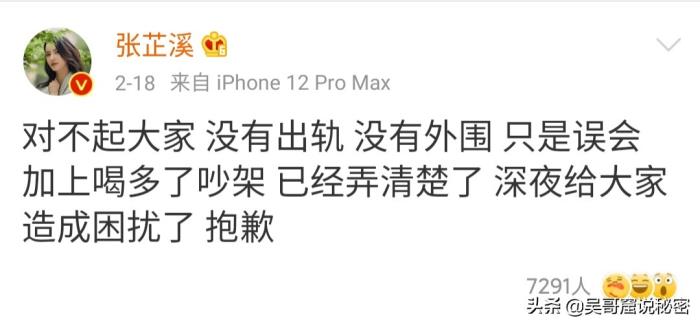 而张芷溪几乎在当天内澄清,“没有出轨,没有外围,只是误会加上喝多了吵架,已经弄清楚了”。这是把公众平台当作宣泄情绪的渠道呢,这个感情的闹剧,“人设”最终是瞒不住真相的。