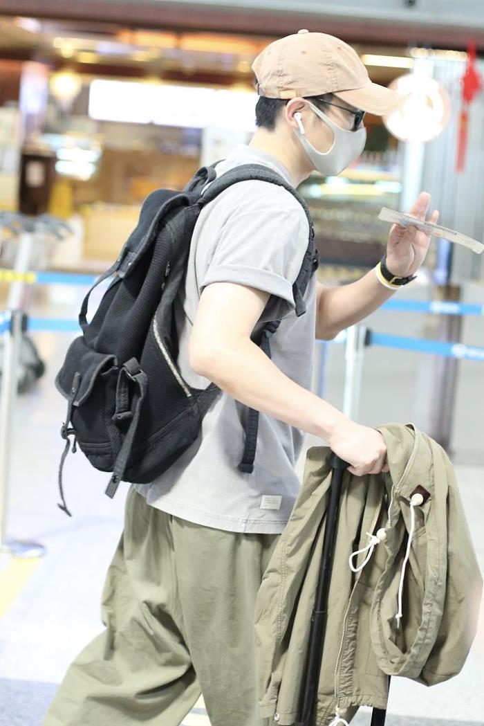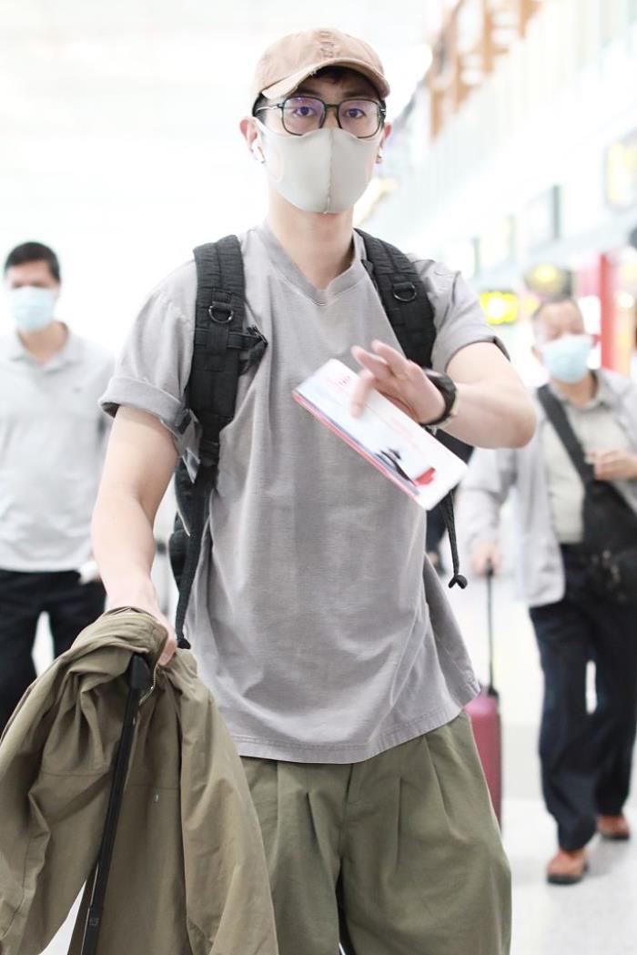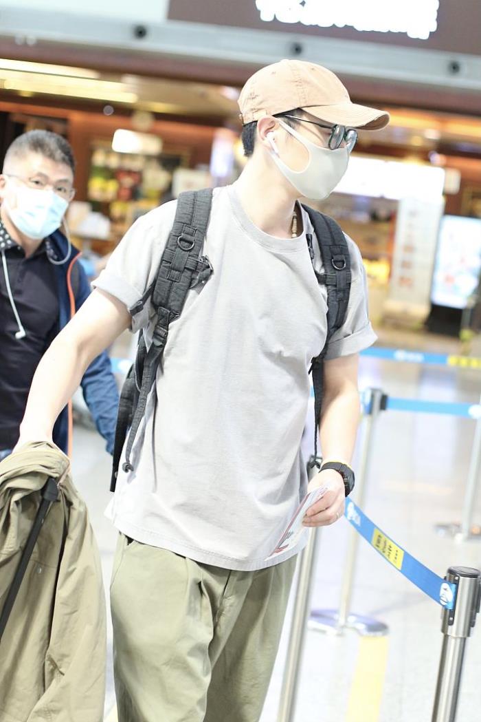 2021年05月30日,北京,朱亚文现身机场,他戴着棒球帽,穿绿裤配灰T真挺帅,挥手致意man味足满满荷尔蒙。