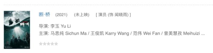 目前她有两部待播电影,一部是李玉导演的《断桥》,合作王俊凯。