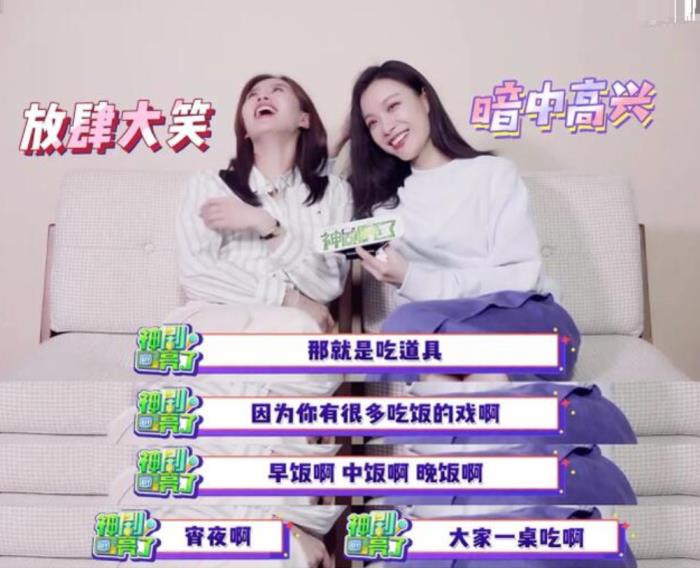 随后倪妮还调侃刘诗诗也贼能吃,刘诗诗在一旁还点头承认,笑得很开心的样子。导演还感慨这个剧组的女演员比男演员还能吃,一番自曝也是非常没有女明星包袱了。