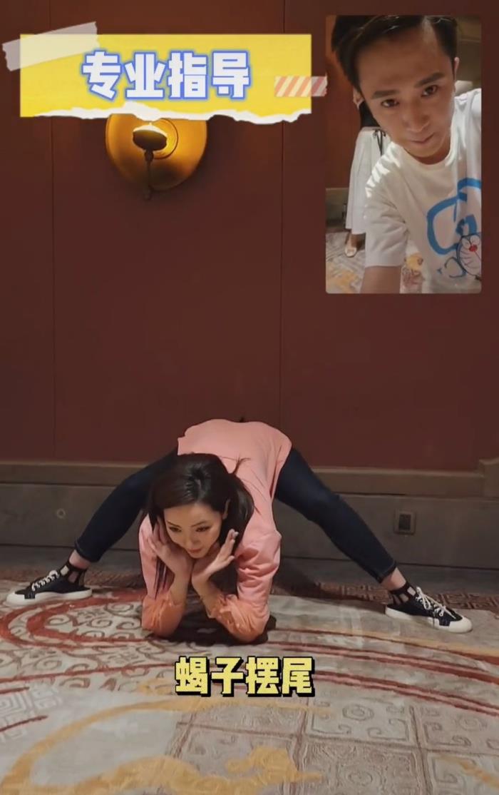 李思思身穿运动服饰,肢体非常柔软,听从杨帆的指挥不断下腰。她还听从杨帆的怂恿,挑战了蝎子腿的姿势,大方秀出完美身材。