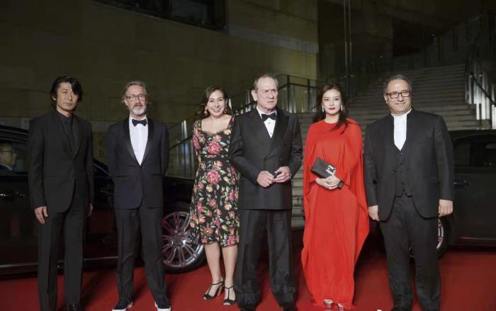 但是不得不说赵薇这套礼裙的选择真的好,与外国人站在一起,“斗篷披风”的独特设计让她不仅吸引了足够的眼还充分显现出中国女性一种端庄大方的气质,把中国女人的魅力四射展现得不留余地。