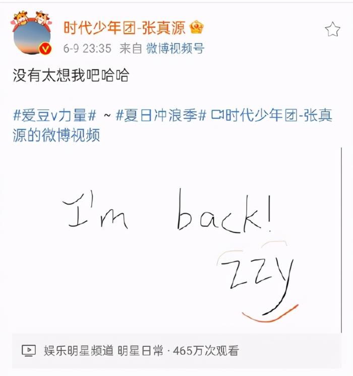 照片中,丁程鑫穿黑色外套牛仔裤,带着黑帽子黑口罩,对镜头竖起大拇指,状态轻松。张真源也在高考之后发了第一条微博,清唱了一首歌,向粉丝宣告:“我回来了。”