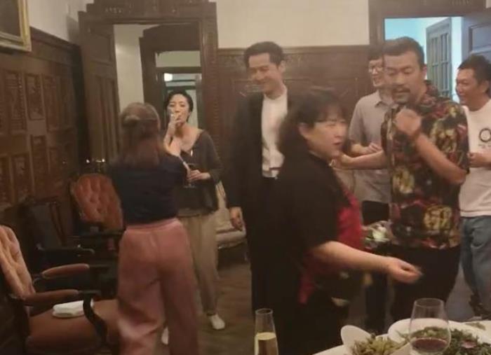 镜头转向一边的胡歌,也在围观桂纶镁跳舞,等到戴帽子男士都跳累了,桂纶镁还能继续跳下去。一大桌子的饭菜,他们都没怎么吃,就在那喝酒跳舞。