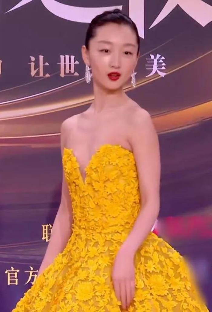 此前周冬雨的造型一直被诟病,她也在慢慢摸索中找到了自己的风格,只不过这次红毯造型似乎翻车,在一众黄色系礼服中淹没。