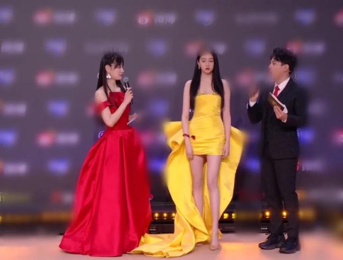 关晓彤和主持人的同框十分有趣,直接组成了“西红柿炒鸡蛋”组合。