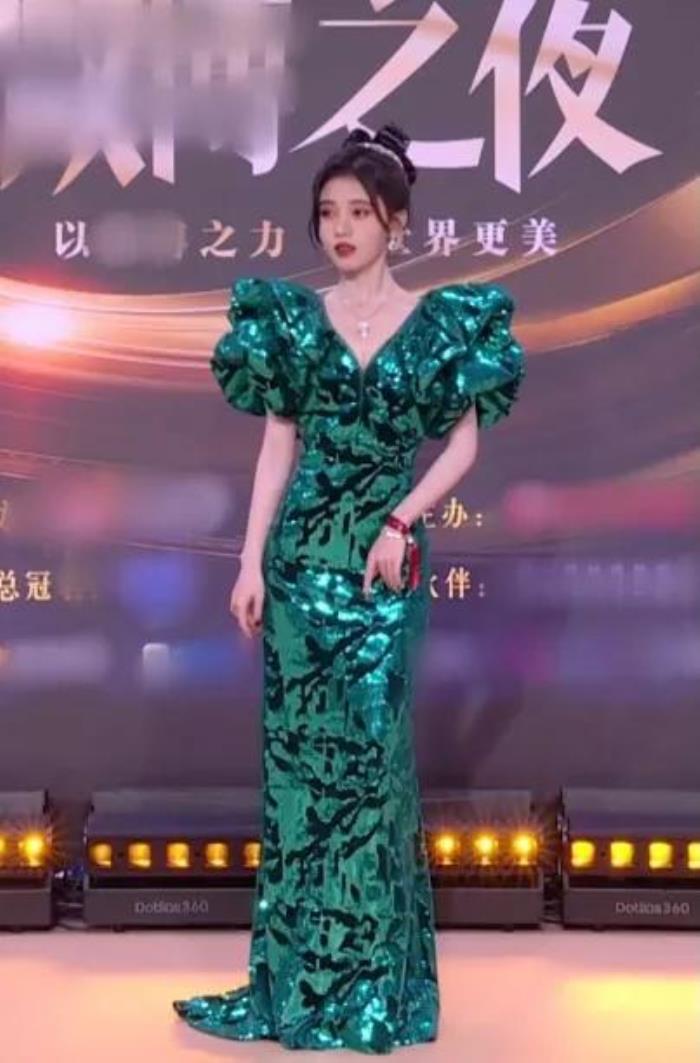 被誉为“千年一遇的美少女”的鞠婧祎,她穿了一身墨绿亮片连衣裙,像是参加贵族酒会的财阀千金。