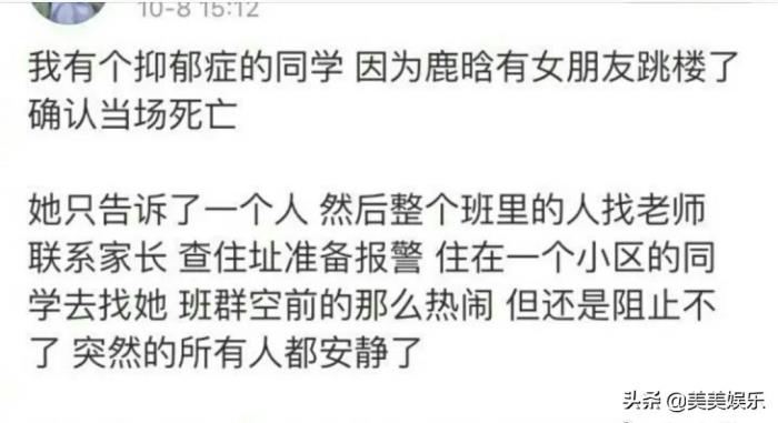 2017年鹿晗公布恋情时,有粉丝跳楼自杀。