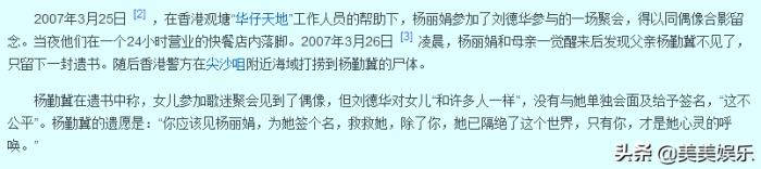 还有刘德华的女粉丝杨丽娟,其父母斥巨资支持女儿追星,因为演唱会结束后刘德华像对待所有粉丝一样,没有时间给杨丽娟签名合影,其父感到不公,用自杀的方式引起刘德华注意,帮助女儿追星。