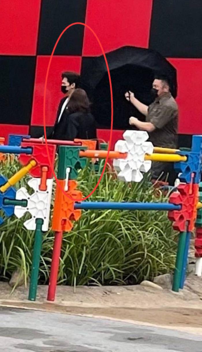 杨洋及团队抵达迪士尼后,热巴也随之现身,穿着黑色露肩裙,脚踩高跟鞋,一如既往地优雅和漂亮。和杨洋的西装同色系的裙子仿佛是情侣款,小细节做到十分到位,很符合七夕的氛围,不得不说,团队的后期营业太给力了。