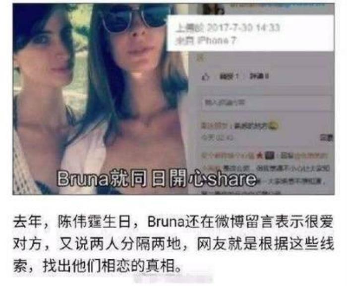 不料,陈伟霆和Bruna的恋情并没有得到网友的祝福,Bruna还遭到了网友的网暴。直到2019年Bruna曝出有了新的男友,男友还是香港职业篮球运动员,条件不比陈伟霆差,她和陈伟霆再也没有可能了。