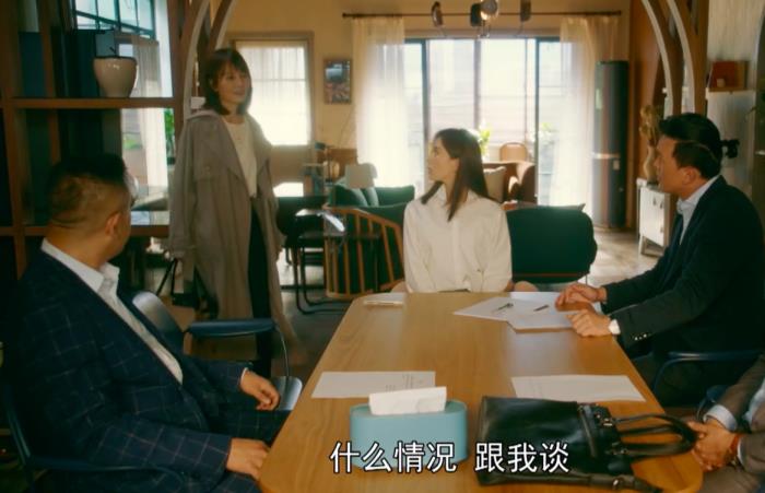 就在蒋南孙忍着痛苦、保持平静,和上门讨债人在餐桌上协商的时候,袁泉饰演的小姨戴茜及时赶到救场。
