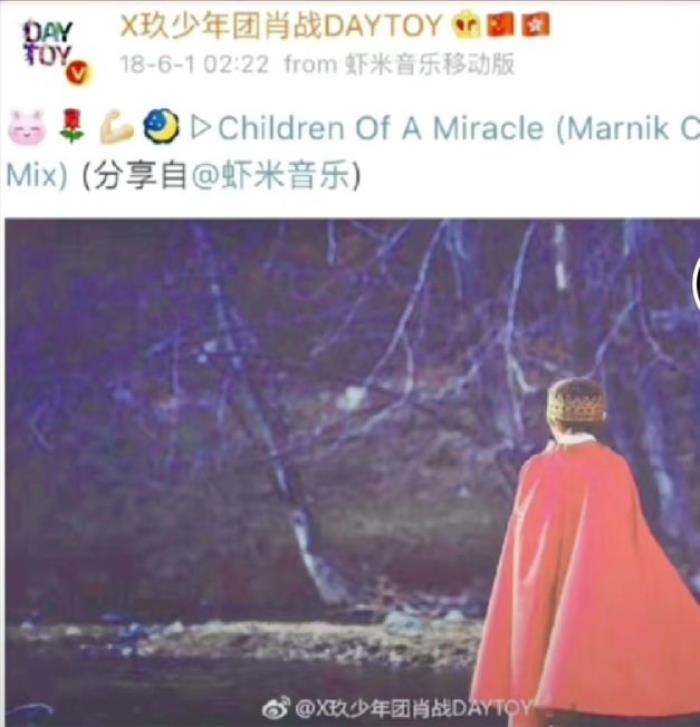 小飞侠是肖战喜欢的一个动漫人物,是一个逆风飞翔无所畏惧的形象肖战在《燃烧吧少年》时期,在少奶奶的主播间里手绘了一幅画作,是一个低着头怀抱圆月的男孩,后来涂色以后又加了一个红色的披风。肖战在比赛结束后,把微博的卡片也换成了红色披风小王子卡片,满足单曲上线期间,肖战微博发了一张穿着红色披风小男孩的照片。
