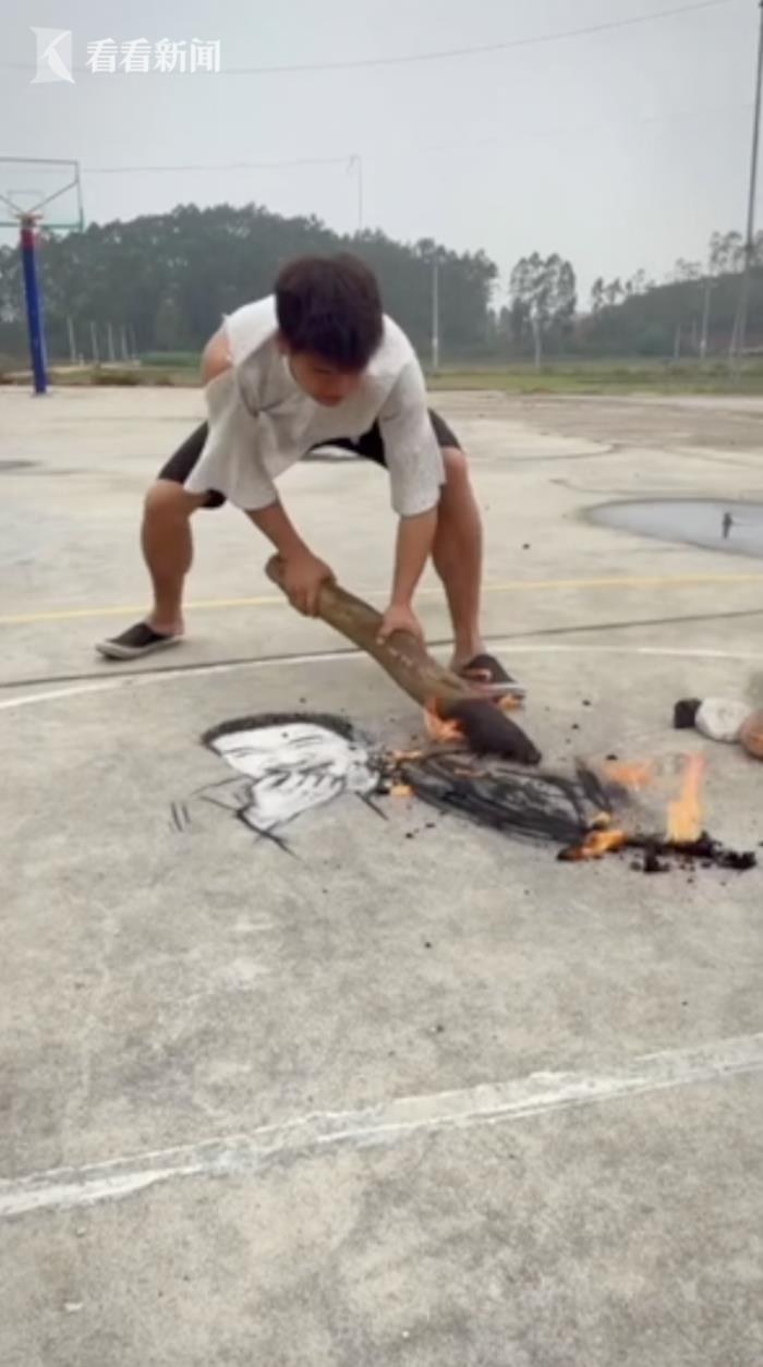 2021年2月28日,广东湛江23岁的小伙温康龙有一项独门绝活,用烧火棍作画!