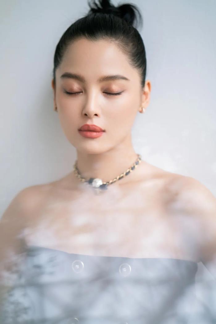 因为脸很有肉感,她一直以来都是有刘海的发型,没想到梳大光明也很有气场。