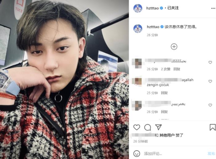 2月26日,黄子韬在社交平台晒出一组近照,他一只手托着腮眼神忧郁,不知是不是因为工作太过疲惫,黄子韬直言觉得自己应该休息休息了。