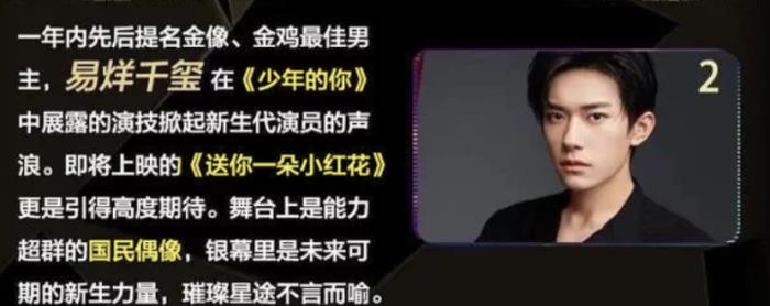 第二位也是非常年轻的易烊千玺,不得不说易烊千玺能够被评为内娱四大顶流,真的是实至名归了吧?