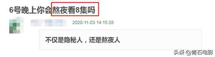 豆瓣的讨论帖里,提到这部剧用的不是“你会追剧吗?”的问法,而是说“你会熬夜追8集吗?”。