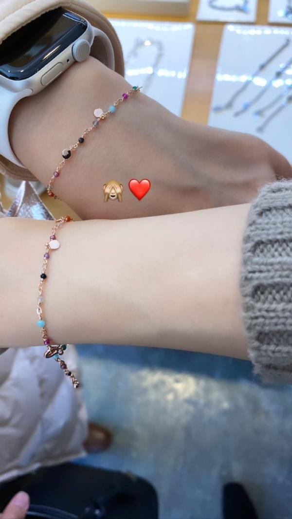 从李先彬晒出的这张美照中,一双细嫩白的美手与偏黑肤色的手交接在了一起。而在这张图中,李先彬更是配上了害羞与小爱心的表情,如此抢眼的情侣手链与小表情很快就让网友们展开了讨论。