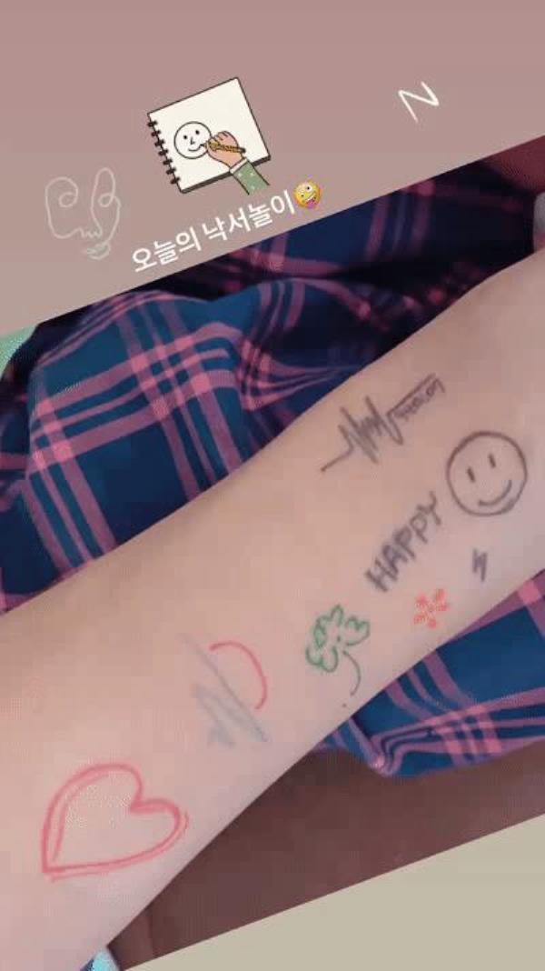 此外,李先彬的其他照片中,也有小爱心的图案。在她晒出的漂亮的手臂中,有着一个画上去的爱心,还有一个笑脸表情,以及一个HAPPY的字样。不难看出在当天她的心情是非常HAPPY。