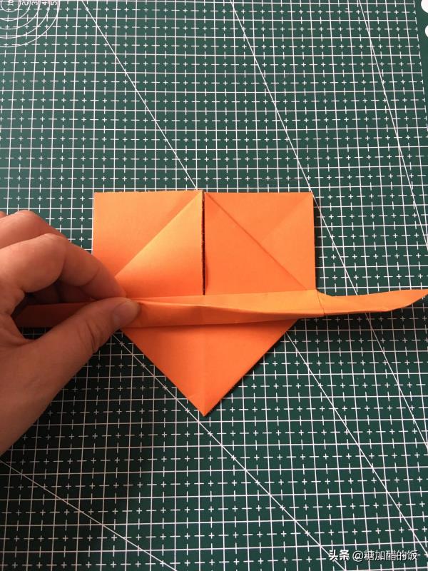 3.在翻过来,把尖角按印向上折。