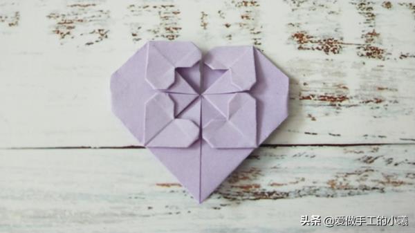 最后左右两边的角向里折叠,一个简单别致的爱心折纸就这样完成啦!