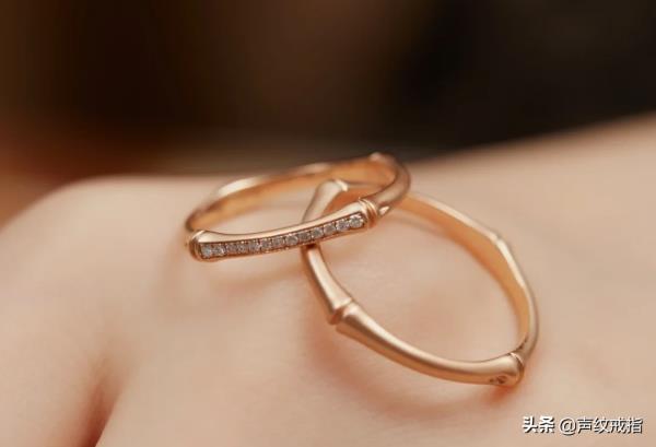 将竹子作为设计灵感,竹节自然弯曲的弧度设计,使得整个戒臂更加立体,女戒不同于男款的简洁,戒指半圈用小钻做搭配,竹节的立体感加上钻石的闪耀,让人很有视觉的冲击力!
