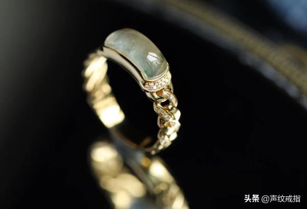 高冰飘绿马鞍戒面,少了满绿的千篇一律,多了山水意境,锁链式的戒壁镂空设计,高级感十足,将山水意境置于指间,像闲云野鹤游历红尘。
