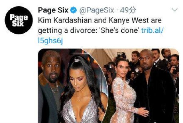 1月6日,有外媒报道称金·卡戴珊(Kim Kardashian)和侃爷(Kanye West)正在办理离婚手续。