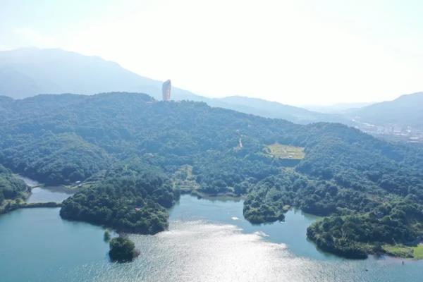 今日,阿弥陀佛接引圣像已经高高矗立于江西省庐山市温泉镇境内的庐山南麓般若峰下一处山头之上,阿弥陀佛接引圣像坐北朝南,北依庐山,南望鄱阳。其所在东林净土苑道场,占三千六百余亩,与东林祖庭相距二十五公里,地接福银高速(昌九高速)、都九高速、环庐山公路,交通便利通达。