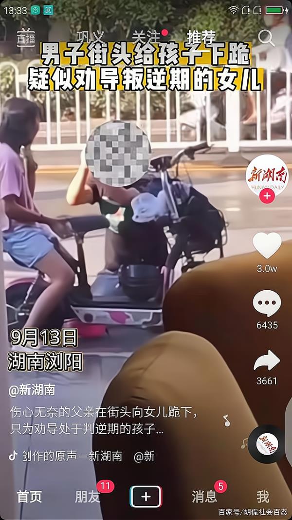 近日,在湖南浏阳街头,一位男子当街在一位十二三岁模样的女孩面前,下跪。