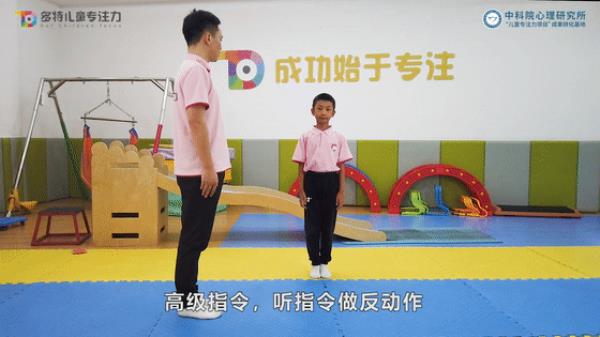 广播、电视播送新闻时,家长说一句,孩子学一句,孩子嘴巴学上句时,耳朵要注意下句,否则就学不下去。每天5分钟左右即可,连续一月,就能达到“跟得上”,到连续学10分钟不错5个字时,孩子的注意力就达到良好了。这种游戏在合格之后也最好经常“玩玩”,可以训练自己的大脑。