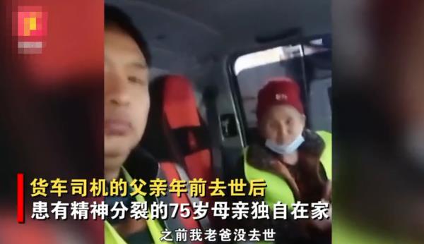 据货车司机秦先生所述,其父亲年前去世了,从那时候开始他便带着母亲出来拉货。秦先生的母亲今年75岁,患有精神分裂症,因为其目前在家里没有人照顾,他便一直带着母亲跑运输。