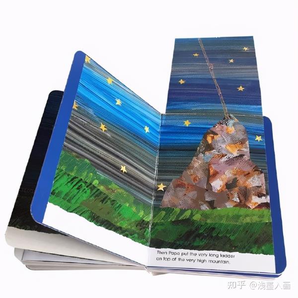 设计亮点:通过折页设计,很长很长的梯子以及月亮的阴晴圆缺,都非常具体的呈现在小读者的眼前。