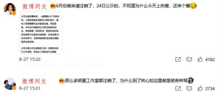 关于林心如注销公司,粉丝也说了6月份就已经申请,只不过手续需要两个月左右的时长。况且申请注销公司的人,绝不止林心如一人,拿这一点来黑,属实有点牵强。
