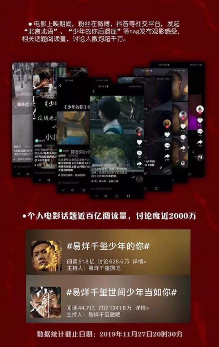 巨大的流量在他身上是光环,在《小红花》上映时,粉丝们有组织的宣传给影片带来了更多的曝光,他本人的影响力也带动了更多观影人群。