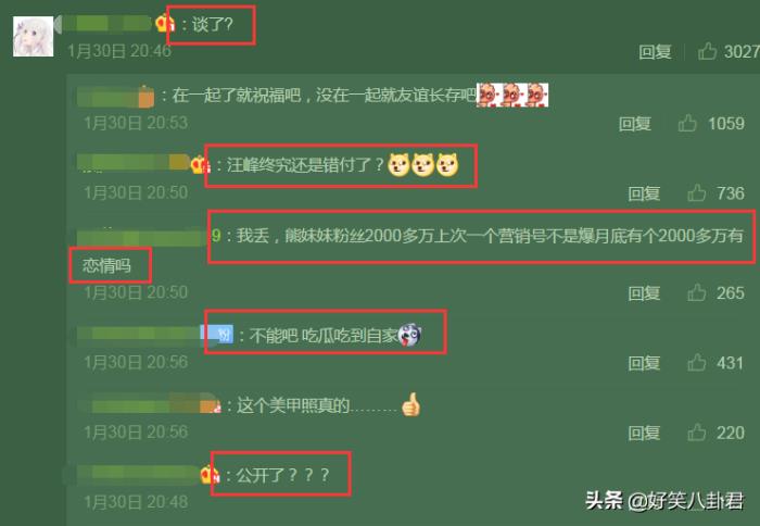 见到这样的情况,好多粉丝也是觉得两人谈恋爱了啊,于是在评论区就有粉丝在问:“谈了?”“公开了?”
