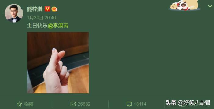 在1月30日晚上,熊梓淇就发了一条微博,这条微博就是来为李溪芮庆生的了,熊梓淇他在李溪芮生日当天晚上就更博为她庆生,这可是用心了哦。