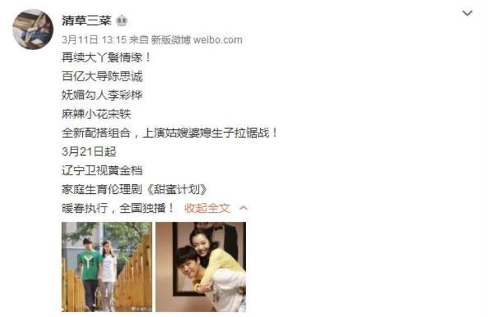 3月12日,电视剧《甜蜜计划》有了定档消息。有媒体爆料称,这部电视剧定档辽宁卫视,即将于3月21日全国首播。该剧由陈思诚、李彩桦和宋轶等人主演。值得注意的是,这是一部“库存剧”,而定档的卫视,也是二线的辽宁卫视。看来,只要二线卫视平台能够深入“挖一挖”,还是可以找到一些演员阵容不错的“库存剧”的。