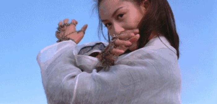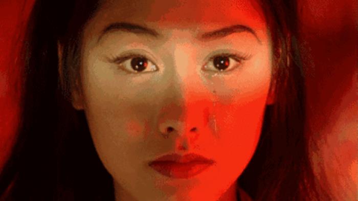 影片里,她看他时眼里好像闪着星光,这种爱意是真的;她眼神变黯淡,眼角挂着一滴泪,这种怨意也是真的,是紫霞在哭,也是朱茵在哭。