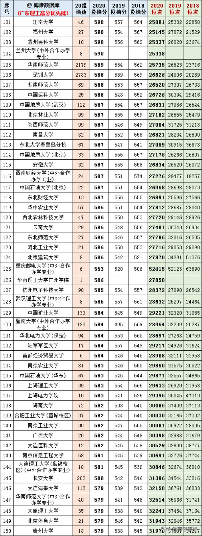 广东省2018~2020年本科