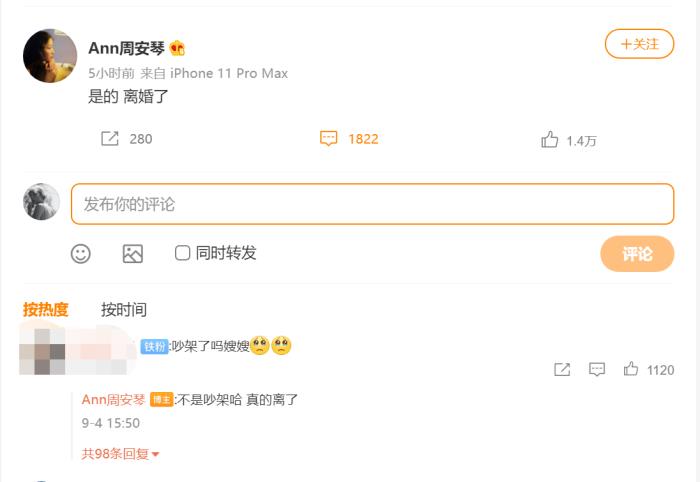 今天(9月4日),2013届快男宁桓宇妻子周安琴发微博宣布离婚,并在评论区回复粉丝“不是吵架,真的离了”。据悉,宁桓宇与周安琴2020年2月领证,8月宁桓宇宣布即将当爸,两人去年还曾录制夫妻带娃综艺。