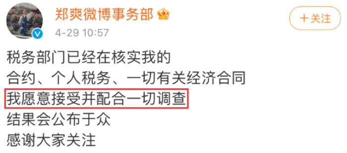 上个月底(4月29日),张恒曝光与郑爽父母的聊天内容记录截图,牵扯出所谓的1.6亿天价片酬以及签订阴阳合同。当时,郑爽第一时间透过旗下V博官方账号表示“会配合调查”,也就意味着爽妹子若想发声的话,仍可“畅所欲言”。