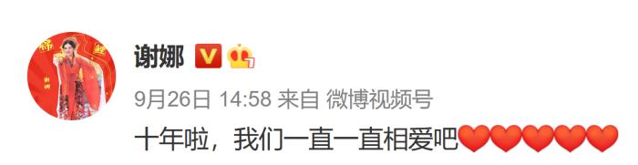 谢娜则表示:“十年啦,我们一直一直相爱吧!”甜煞众人。