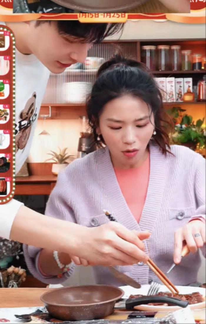 在推荐牛排的时候,黄英并没有过多的去介绍产品,而是直接让助手把锅铲拿上来,直接动手为大家煎牛排,黄奕整个煎牛排的过程非常的娴熟,一只手插在裤兜里,用单手就把牛排给煎好了。